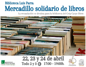 A favor de la Biblioteca del CEIP Carpe DiemDías 23, 24 y 25 de abril. Biblioteca Municipal Luis Parra. Entrada de la Biblioteca. De 17.00 a 19.00 horas. Libros a 2 € y 3 € ... |